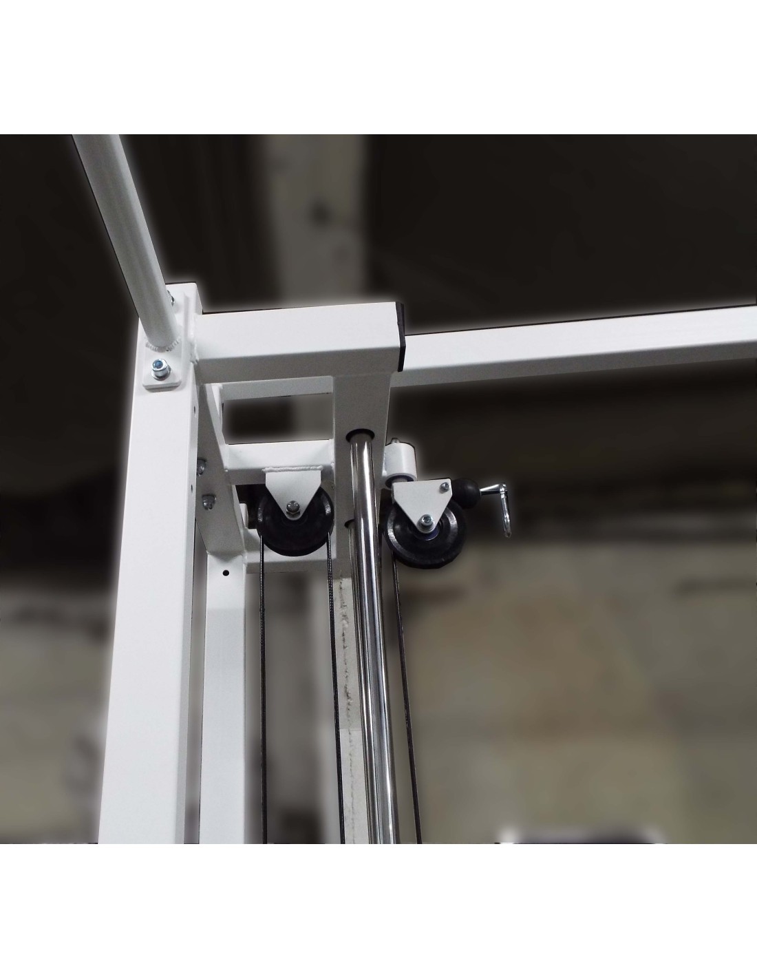 - в тренажере используется стальной грузоподъемный трос диаметром 5 мм и сопротивлением на разрыв 800 кг в полиуретановой оболочке, увеличивающей время службы грузоблочной системы;