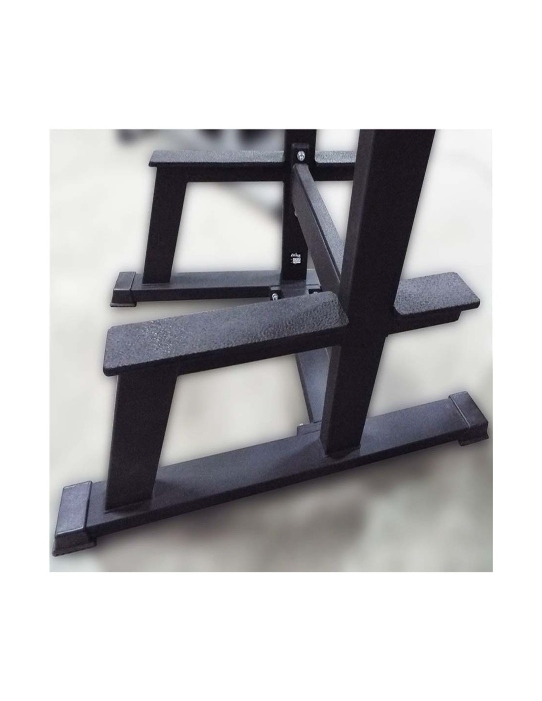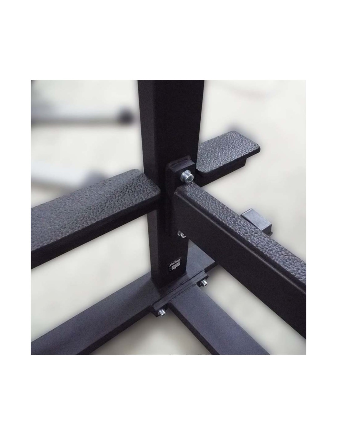 - Резиновые амортизирующие подпятники препятствуют скольжению и защищают пол тренажёрного зала от повреждений.