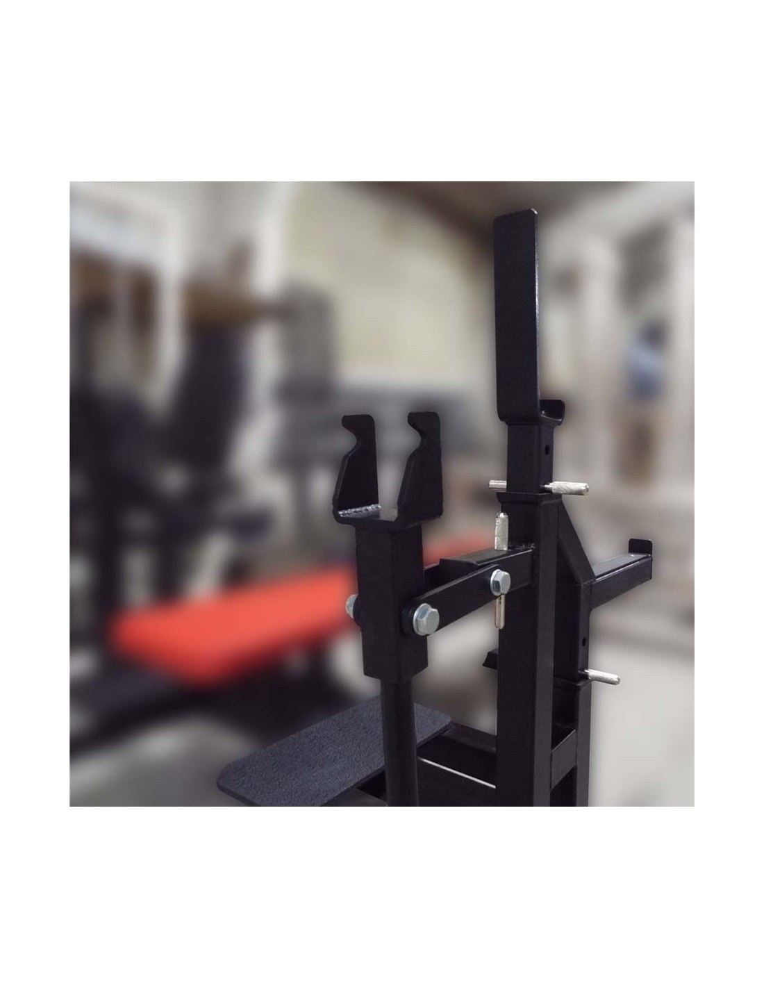 - Боковые страховочные площадки предназначены для удержания штанги в случае её падения во время выполнения упражнения, если у спортсмена не хватило сил поставить её самостоятельно на крюки.