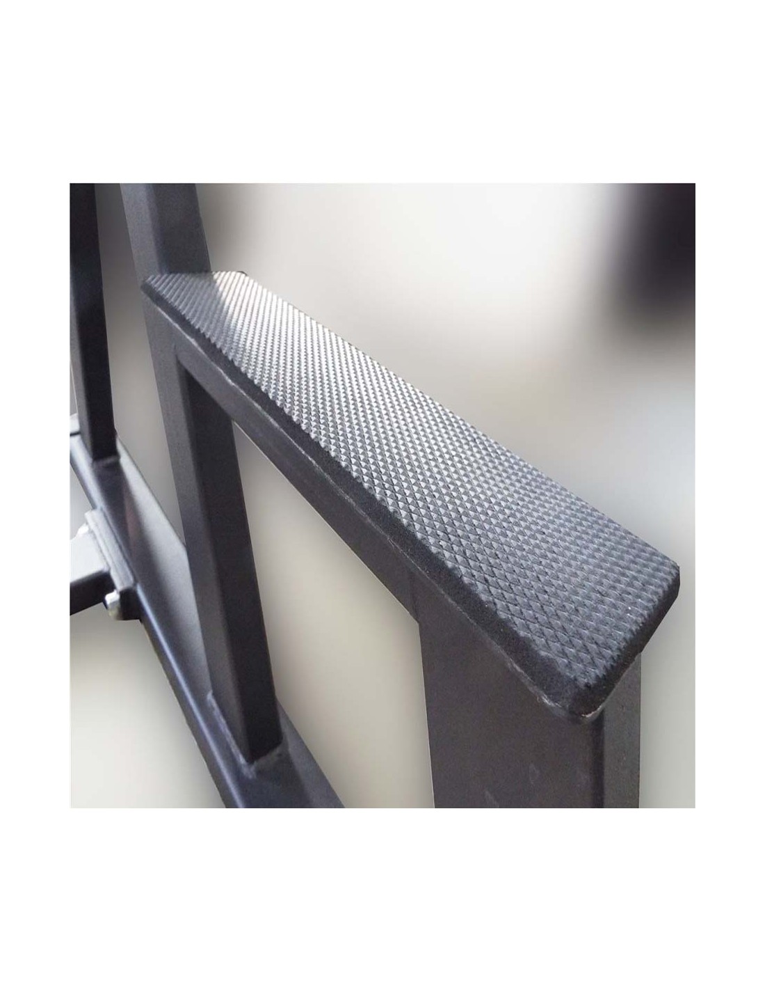 - Также на раме жёстко закреплена платформа BOSU, подлокотники с боковыми упорами и рифленые ПВХ-ручки, которые позволяют удобно расположиться на тренажёре для выполнения подъёма ног.