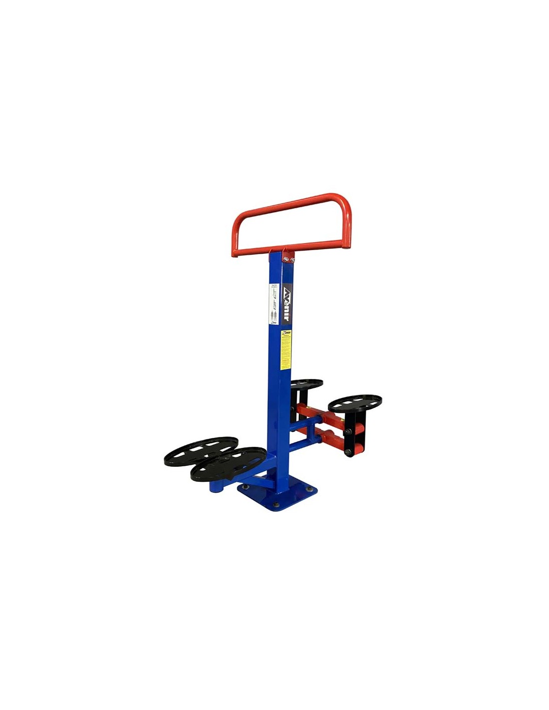 Уличное спортивное оборудование представляет собой объединение в один комплекс: степпер и твистер. Тренажер степпер имитирует ходьбу по лестнице. Степпер используется для кардиотренировок, разминок, поддержания общей физической формы. Он универсален и воздействует комплексно на весь организм человека. Самая большая нагрузка приходится на мышцы ног, коленные и тазобедренные суставы, при этом увеличивается кровоснабжение и насыщение организма человека кислородом. Твистер задействует наружные и внутренние косые мышцы живота, а также прямые мышцы живота. Занятия на твистере способствуют эффективно сбросить лишние килограммы и сантиметры, накачать мышцы ног и ягодиц, помогут обрести красивую и подтянутую фигуру. Он рассчитан для уличного, паркового использования. Тренажер изготовлен специализированным предприятием по выпуску профессиональных и реабилитационных тренажеров.
